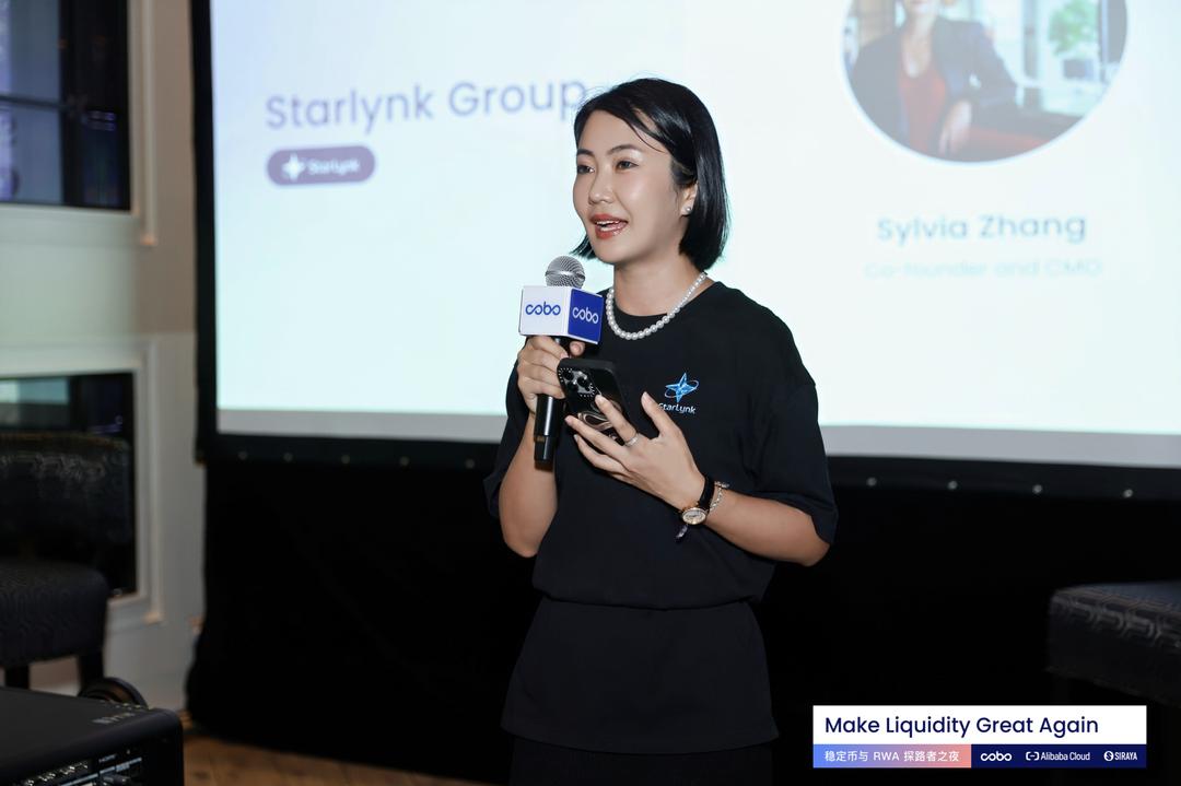 Sylvia Zhang, Co-founder & CMO, Starlynk Group Sylvia spoke to the role of RWAs in reshaping global markets. By tokenizing assets and making them programmable, she argued, liquidity can be unlocked in ways that traditional structures have never achieved. Her vision pointed to new financial products blending the stability of real-world assets with blockchain-native flexibility. (Photo of Sylvia Zhang)