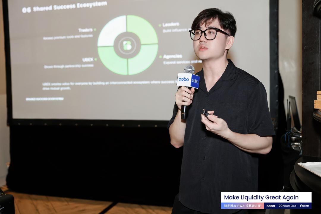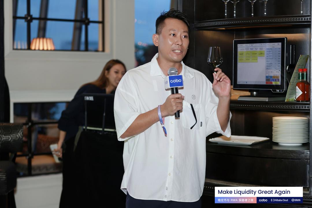 Alex Zuo, SVP at Cobo Alex opened the evening by framing Cobo’s mission as both a custodian of assets and of trust. He highlighted Cobo’s scale — safeguarding billions in digital assets and serving over 500 institutional clients globally — while pointing to the need for infrastructure that balances security, compliance, and efficiency. (Photo of Alex Zuo)